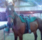 Sparkle was adopted from the Society for Hooved Animals Rescue and Emergency in February of 2014. She had previously been a livery horse who had come into the rescue in awful shape. After the rescue nursed her back to health, she was adopted and came to live at Meadowsweet Ranch. She is named after her shiny chestnut coat which is covered in white bird catcher spots or SPARKLES. Sparkle is loved by many of our intermediate and advanced riders because of her get up and go spirit. She is always ready to go! Maddy, one of Sparkle's regular riders says, " Sparkle is a one of a kind horse, both in coloring and personality. She is very trusting and kind once she gets to know you."